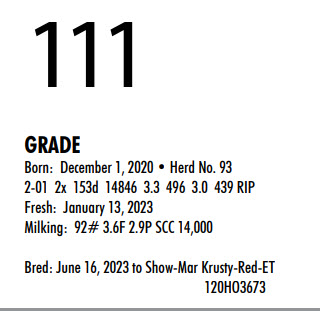 Milking: 92# 3.6F 2.9P SCC 14,000