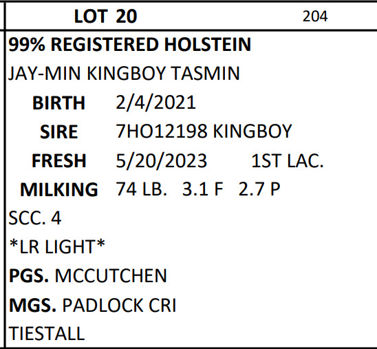 DAIRY COW AND HEIFER SALE - BRUBACKER'S QUALITY DAIRY SALES