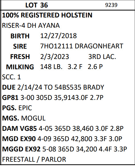 DAIRY COW AND HEIFER SALE - BRUBACKER'S QUALITY DAIRY SALES