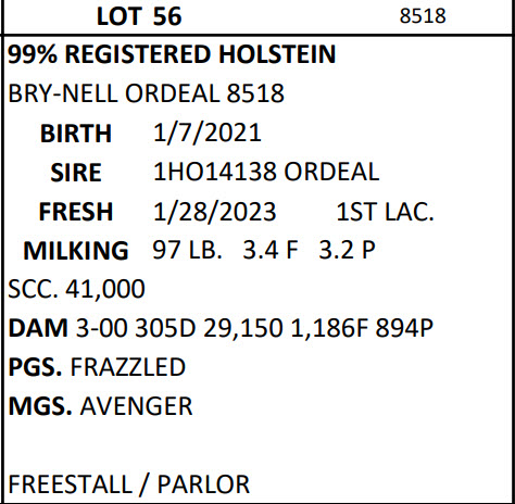 DAIRY COW AND HEIFER SALE - BRUBACKER'S QUALITY DAIRY SALES