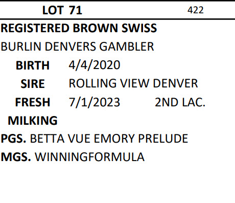 DAIRY COW AND HEIFER SALE - BRUBACKER'S QUALITY DAIRY SALES