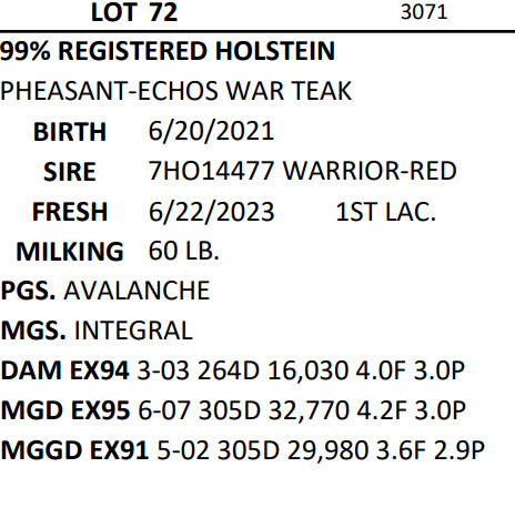 DAIRY COW AND HEIFER SALE - BRUBACKER'S QUALITY DAIRY SALES