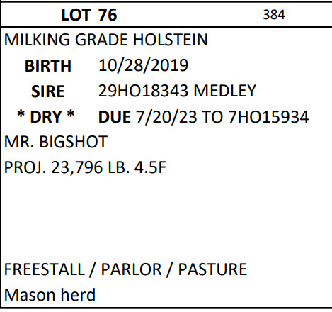 DAIRY COW AND HEIFER SALE - BRUBACKER'S QUALITY DAIRY SALES