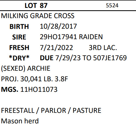 DAIRY COW AND HEIFER SALE - BRUBACKER'S QUALITY DAIRY SALES