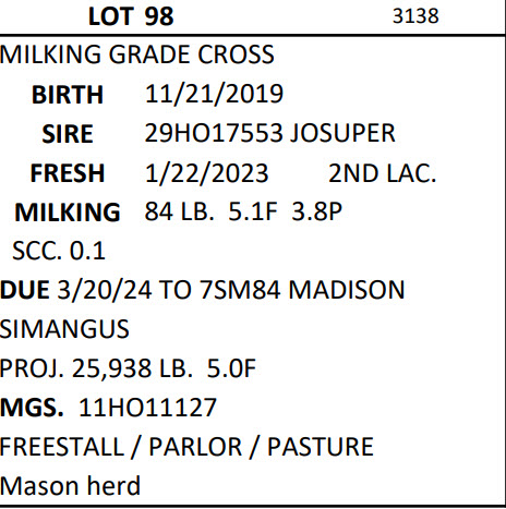 DAIRY COW AND HEIFER SALE - BRUBACKER'S QUALITY DAIRY SALES