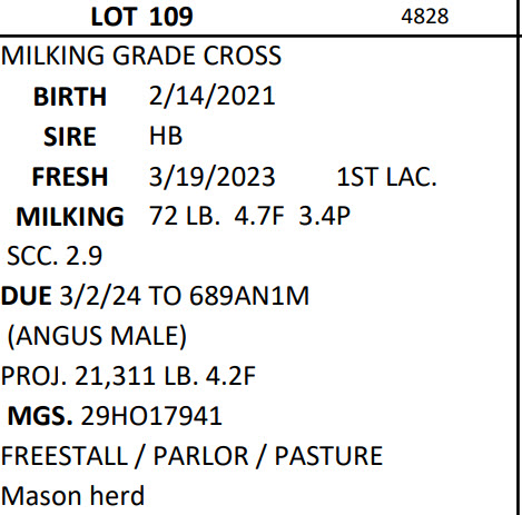 DAIRY COW AND HEIFER SALE - BRUBACKER'S QUALITY DAIRY SALES