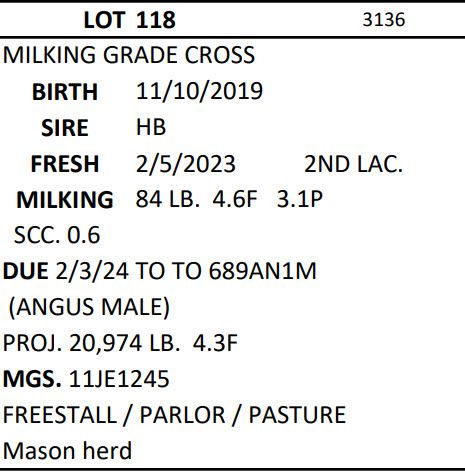 DAIRY COW AND HEIFER SALE - BRUBACKER'S QUALITY DAIRY SALES