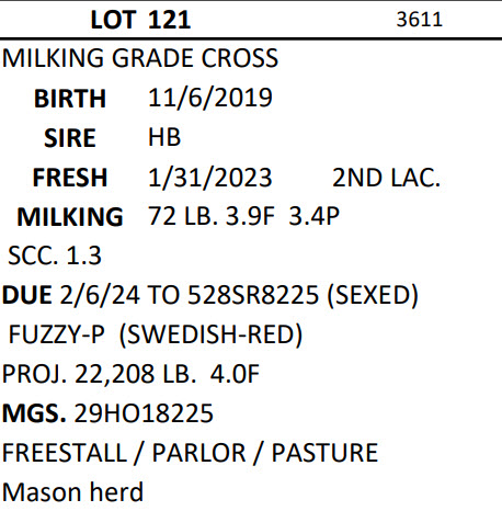 DAIRY COW AND HEIFER SALE - BRUBACKER'S QUALITY DAIRY SALES