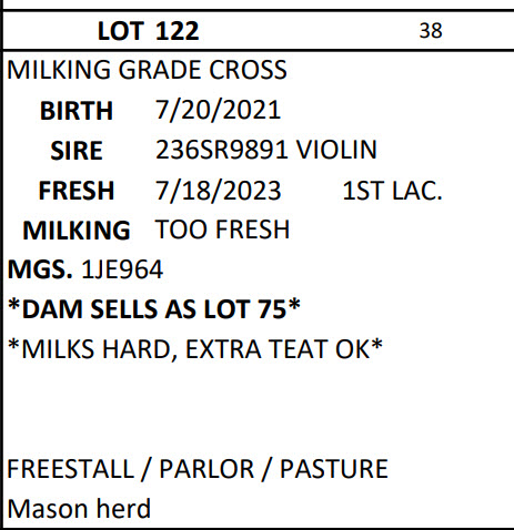 DAIRY COW AND HEIFER SALE - BRUBACKER'S QUALITY DAIRY SALES