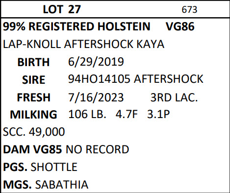 DAIRY COW AND HEIFER SALE - BRUBACKER'S QUALITY DAIRY SALES