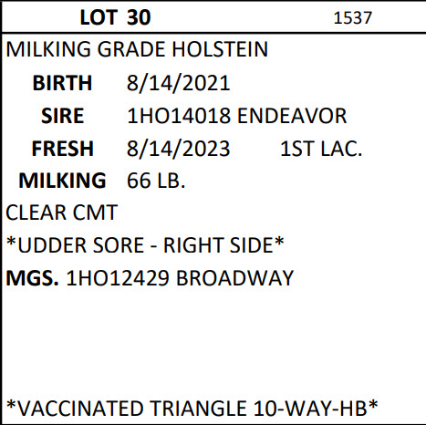 DAIRY COW AND HEIFER SALE - BRUBACKER'S QUALITY DAIRY SALES