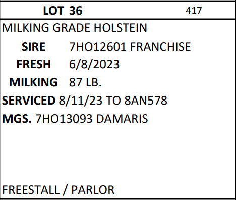 DAIRY COW AND HEIFER SALE - BRUBACKER'S QUALITY DAIRY SALES