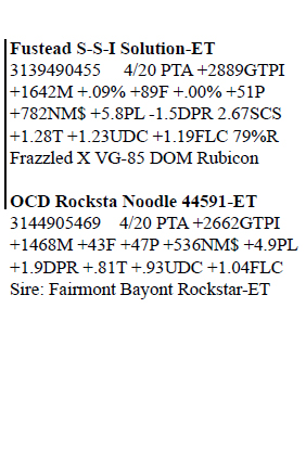 3209480583 99%RHA-I Born 12/27/19 4/20 PTA +2798GTPI +1106M +.09% +69F +.05% +50P +686NM$ +5.9PL +.4DPR 2.79SCS +1.04T +.70UDC +1.41FLC +171FE +.6FI 8.4%SCE +718CM$ A2/A2