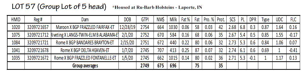 LOT 57 (Group Lot of 5 head) *Housed at Ru-Barb Holsteins