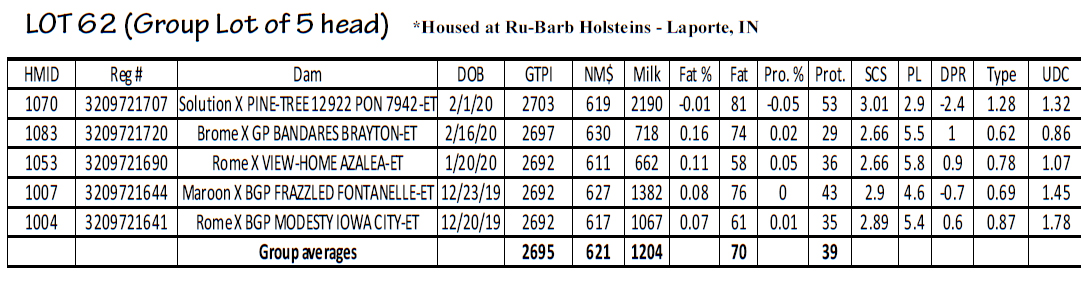 LOT 62 (Group Lot of 5 head) *Housed at Ru-Barb Holsteins