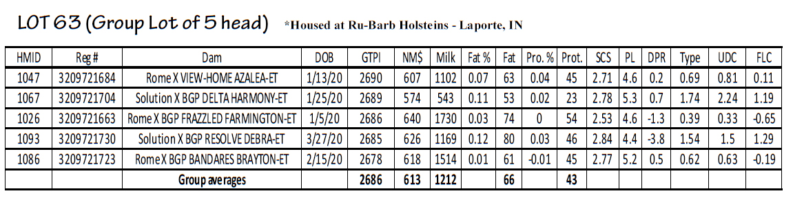 LOT 63 (Group Lot of 5 head) *Housed at Ru-Barb Holsteins