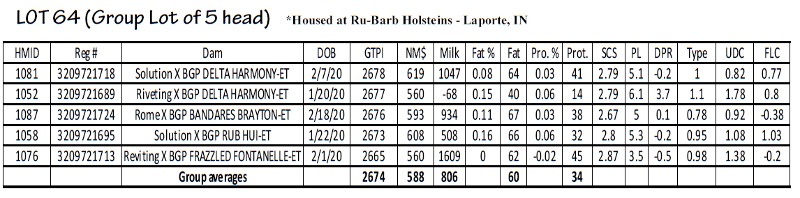 LOT 64 (Group Lot of 5 head) *Housed at Ru-Barb Holsteins