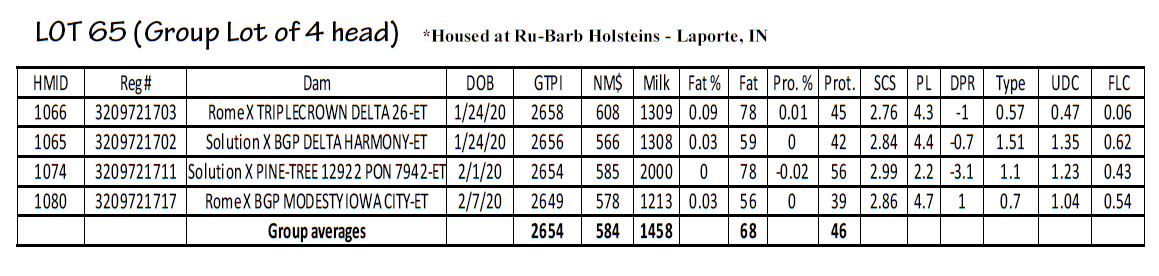 LOT 65 (Group Lot of 4 head) *Housed at Ru-Barb Holsteins