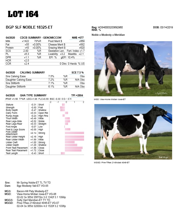 OFFICIAL ID: HO840003209480405 SIRE: Medley DAM: Farmington TPI: 2797 DWP: 946 NM$: 741 CM$: 753 DWP: 719 MILK: 1754 FAT: 71 PROTEIN: 56