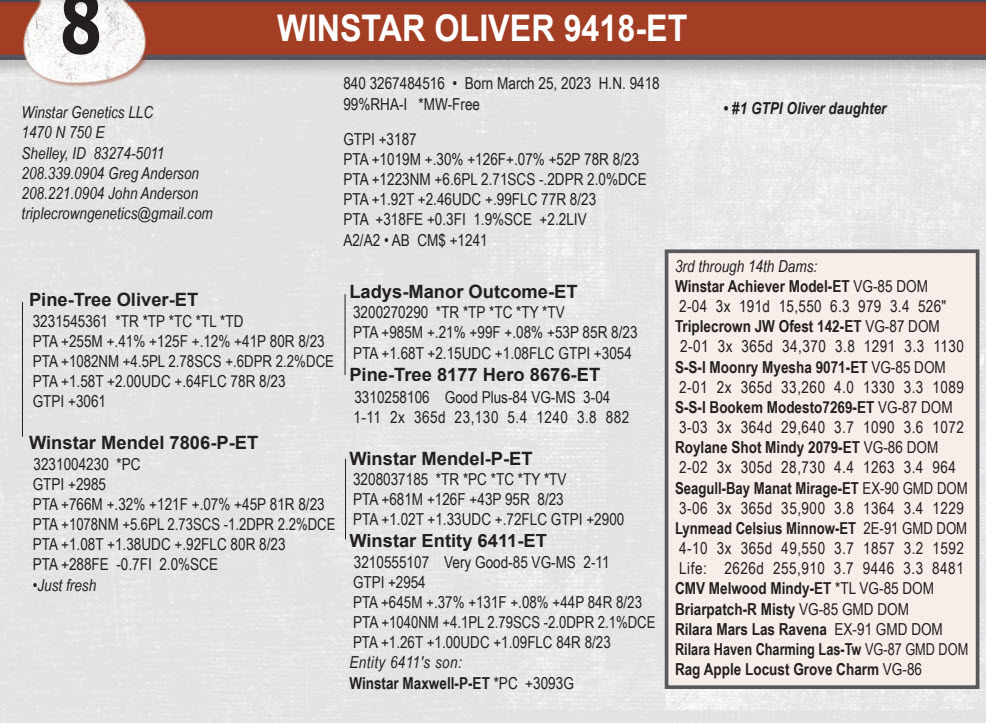 A2/A2 - AB CM$ +1241 - #1 GTPI Oliver daughter