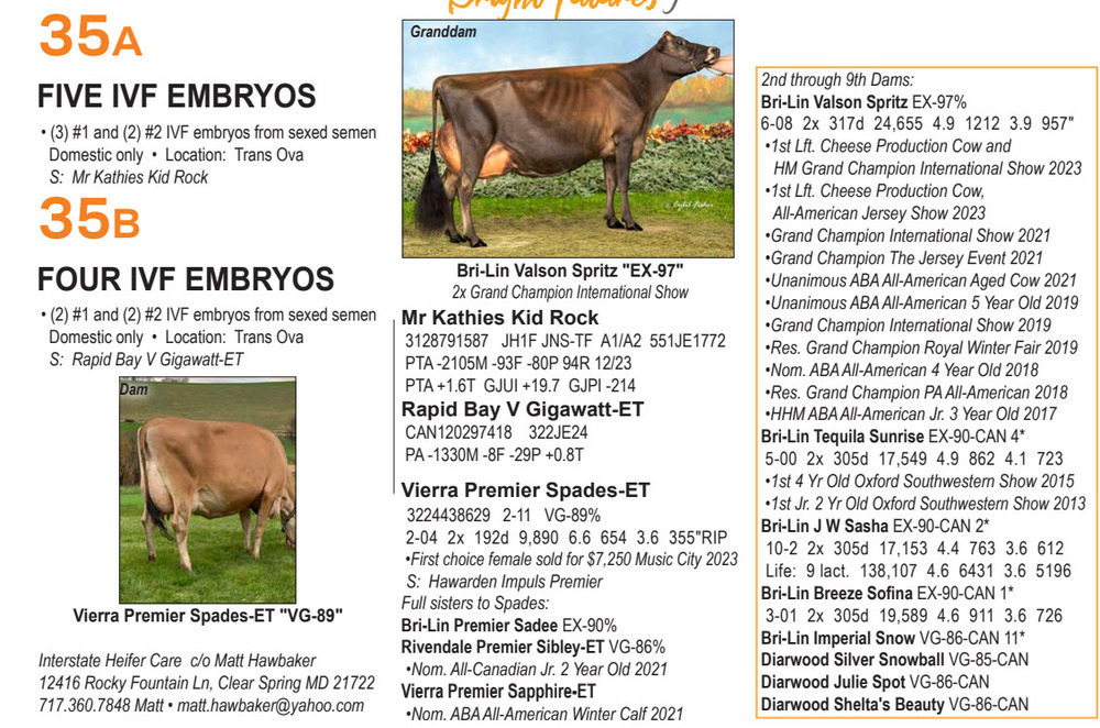 (2) #1 and (2) #2 IVF embryos from R/S NOT SEXED SEMEN