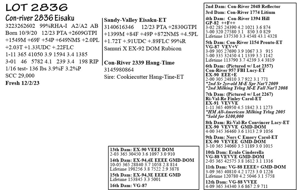 Conrad Farm Registered Holsteins Complete Dispersal