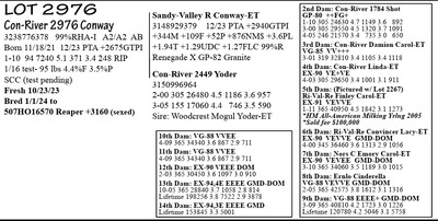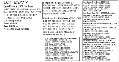 3238776386 99%RHA-I A1/A2 AE Born 12/8/23 12/23 PTA +2567GTPI +1359M +79F +40P +597NM$ +3.0PL +1.06T +.23UDC +.10FLC 1-11 49 5758 7.6 435 2.5 146 RIP 1/16 test- 128 lbs 7.1%F 2.4%P SCC 13,000 Fresh 11/29/23