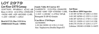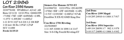 3238776388 99%RHA-I A2/A2 AB Born 12/11/21 12/23 PTA +2686GTPI +719M +70F +40P +649NM$ +2.9PL +1.97T +1.89UDC +1.68FLC 1-11 D 53 3327 6.6 218 3.2 106 RIP 1/16 test- 86 lbs 3.9%F 3.2%P SCC 13,000 Fresh 11/25/23