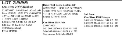 3238776395 99%RHA-I A2/A2 BB Born 12/27/21 12/23 PTA +2607GTPI 1-10 71 6363 4.8 303 3.5 224 1/16 test- 94 lbs 4.2%F 3.4%P SCC 44,000 Fresh 11/7/23