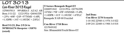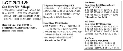 3238776400 98%RHA-I A2/A2 AA Born 1/4/22 12/23 PTA +2466GTPI +389M +65F +30P +453NM$ +1.4PL +1.33T +.84UDC -.06FLC 1-11 40 3020 4.7 143 3.0 90 RIP 1/16 test- 86 lbs 4.5%F 2.8%P SCC 18,000 Fresh 12/8/23