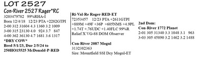 3203479782 99%RHA-I Born 12/4/18 12/23 PTA +2282GTPI 2-00 312 31604 4.3 1360 3.2 1009 3-00 315 23130 4.0 924 3.7 847 4-00 362 36130 4.7 1681 3.6 1317 *DRY COW* Bred 5/1/23, Due 2/5/24 to 250HO15525 McDonald-P-RED