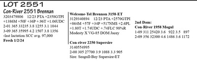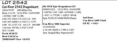 3203479797 100%RHA-NA Born 1/13/19 12/23 PTA +2167GTPI +1670M +28P +2.3PL 2-02 353 33823 3.9 1333 2.8 949 3-03 365 44960 3.4 1523 3.1 1379 4-09 81 11727 3.8 443 3.5 408 RIP 1/16 test- 165 lbs 3.3%F 2.3%P SCC 13,000 Fresh 10/28/23 Bred 1/26/24 to 250HO16497 Pace +3147G