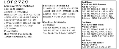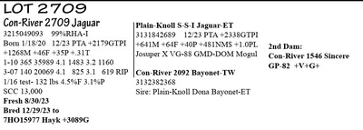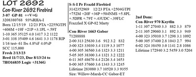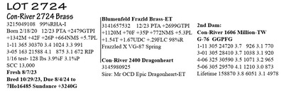 3-05 G-78 V++GF 3215049109 96%RHA-I Born 2/20/20 12/23 PTA +2414GTPI +1970M +48F +49P +592NM$ +3.5PL 1-09 300 30,074 3.4 1030 3.0 911 2-09 328 36403 3.9 1416 3.5 1287 3-10 28 2977 4.6 137 3.0 90 RIP 1/16 test- 124 lbs 4.6%F 3.0%P SCC 13,000 Fresh 12/20/23