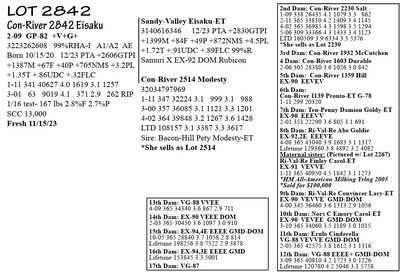 2-09 GP-82 +V+G+ 3223262608 99%RHA-I A1/A2 AE Born 10/15/20 12/23 PTA +2606GTPI +1387M +67F +40P +705NM$ +3.2PL +1.35T +.86UDC +.32FLC 1-11 341 40627 4.0 1619 3.1 1257 3-01 63 9019 4.1 371 2.9 262 RIP 1/16 test- 167 lbs 2.8%F 2.7%P SCC 13,000 Fresh 11/15/23