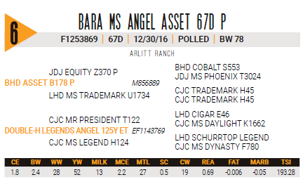 F1253869 | 67D | 12/30/16 | POLLED | BW 78 Bred A-I on 2/21/20 to DC/BHD King F2503 Pld, (another homozygous Polled sire), Safe in calf