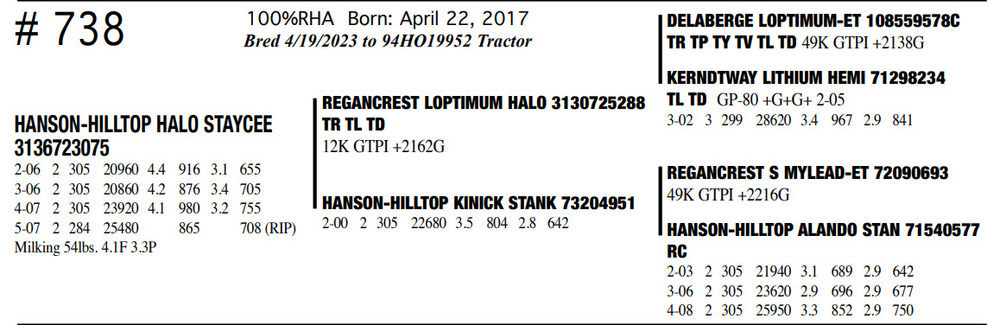 Milking 54lbs. 4.1F 3.3P 100%RHA Born: April 22, 2017