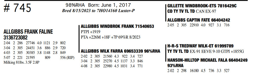 Milking 81lbs. 3.5F 2.8P 98%RHA Born: June 1, 2017