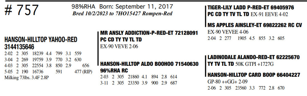Milking 73lbs. 3.4F 2.8P 98%RHA Born: September 11, 2017