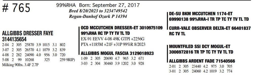 Milking 90lbs. 3.4F 2.7P 99%RHA Born: September 27, 2017