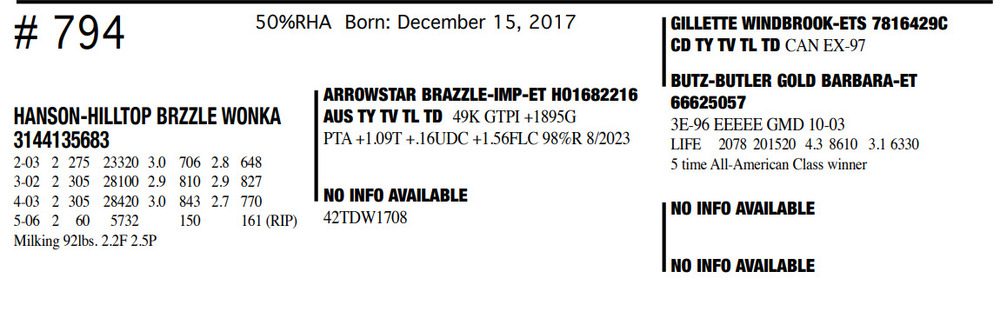 Milking 92lbs. 2.2F 2.5P 50%RHA Born: December 15, 2017