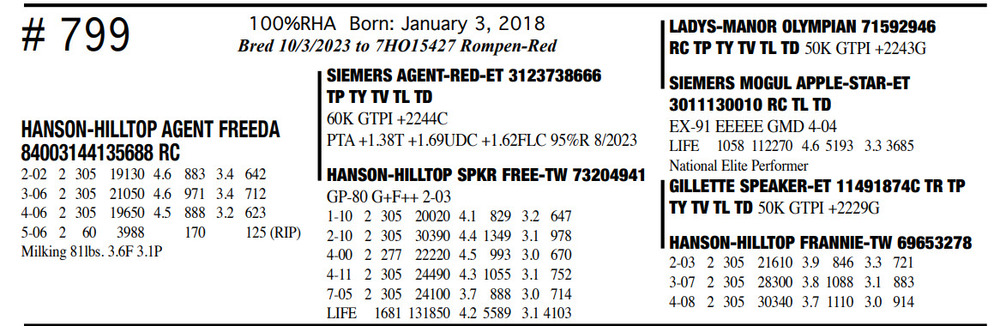 Milking 81lbs. 3.6F 3.1P 100%RHA Born: January 3, 2018