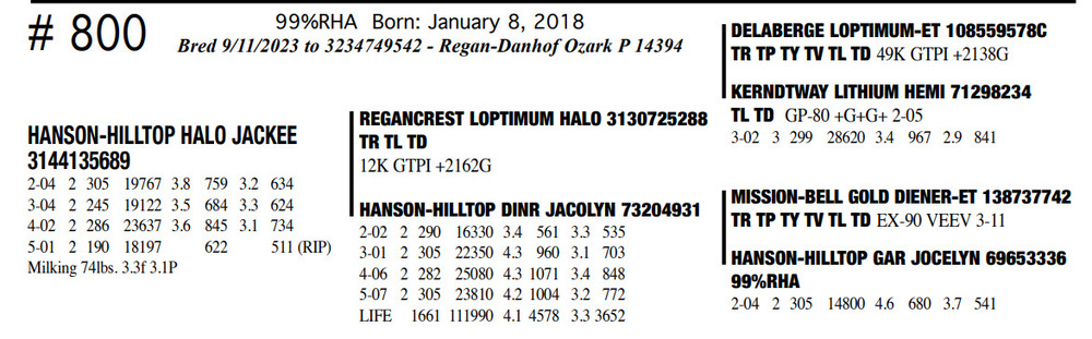Milking 74lbs. 3.3f 3.1P 99%RHA Born: January 8, 2018