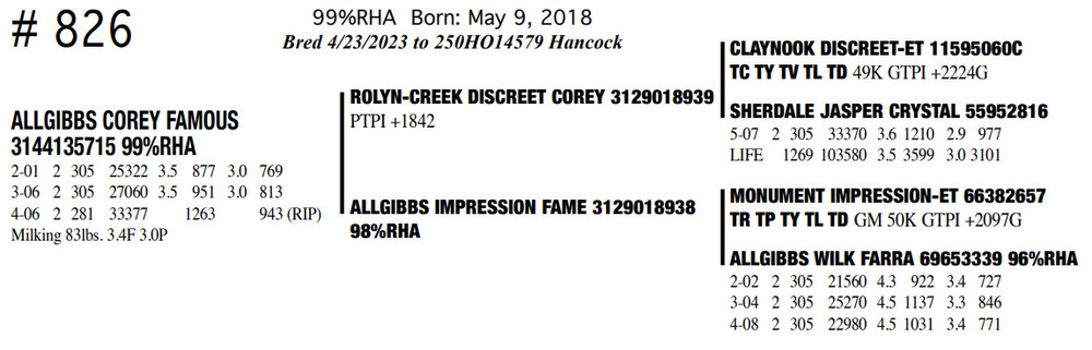 Milking 83lbs. 3.4F 3.0P 99%RHA Born: May 9, 2018
