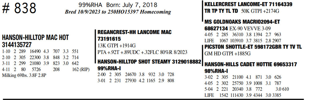 Milking 69lbs. 3.8F 2.8P 99%RHA Born: July 7, 2018