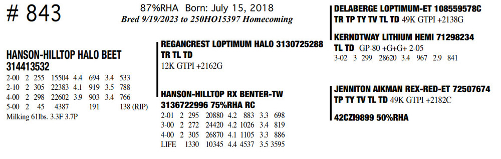 Milking 61lbs. 3.3F 3.7P 87%RHA Born: July 15, 2018