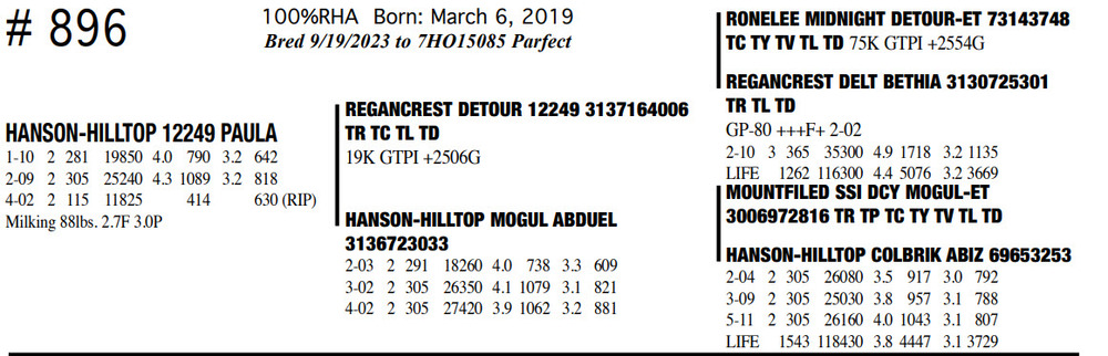 Milking 88lbs. 2.7F 3.0P 100%RHA Born: March 6, 2019