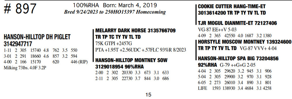 Milking 73lbs. 4.0F 3.2P 100%RHA Born: March 4, 2019