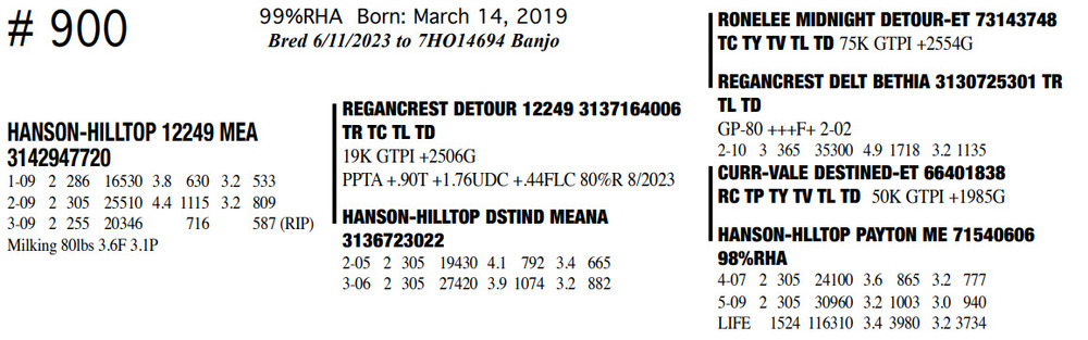 Milking 80lbs 3.6F 3.1P 99%RHA Born: March 14, 2019