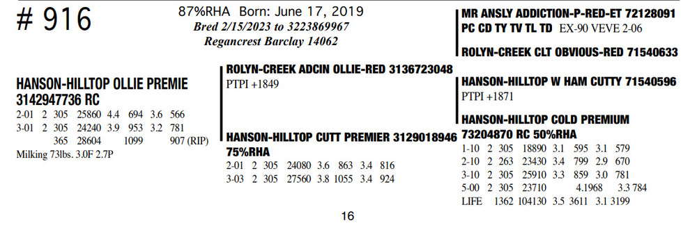 Milking 73lbs. 3.0F 2.7P 87%RHA Born: June 17, 2019