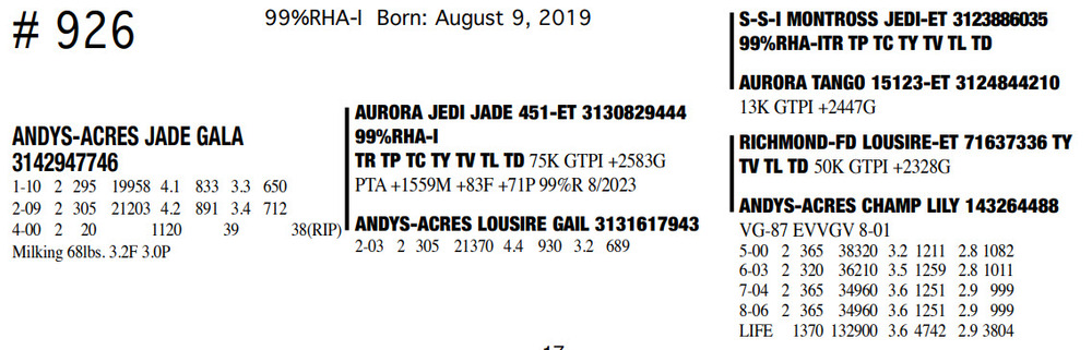 Milking 68lbs. 3.2F 3.0P 99%RHA-I Born: August 9, 2019